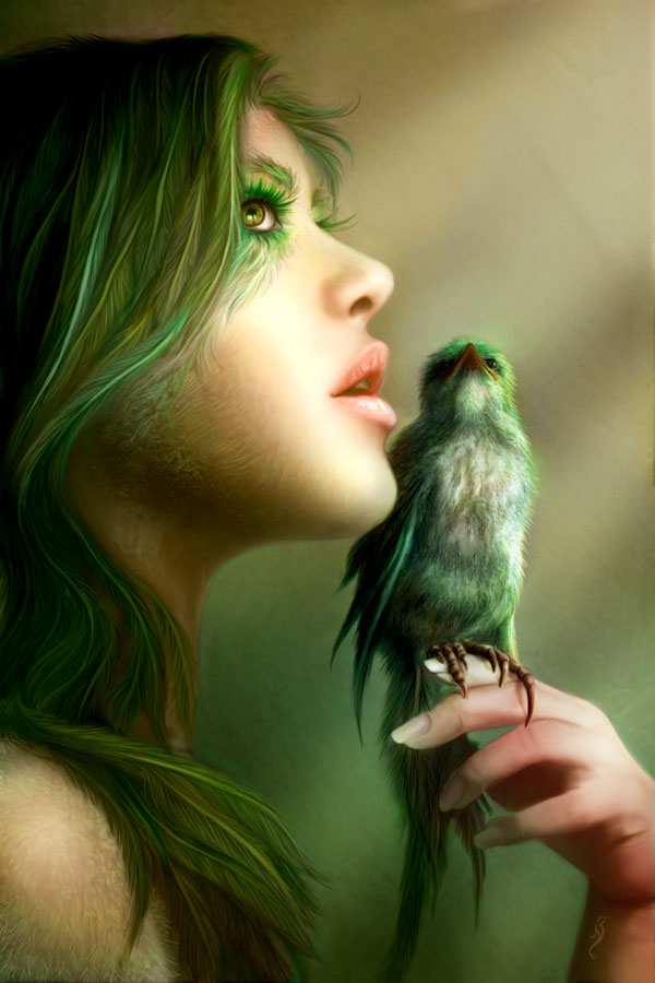 Cítila jsem vítr, jež mi peří chvíli rozverně čechral a vzápětí zase uhlazoval k tělu. Byl to zvláštní pocit. Na okamžik jsem si myslela, že se mi peří snad od těla odtrhne a pak… bylo přesně tak, jak být mělo.